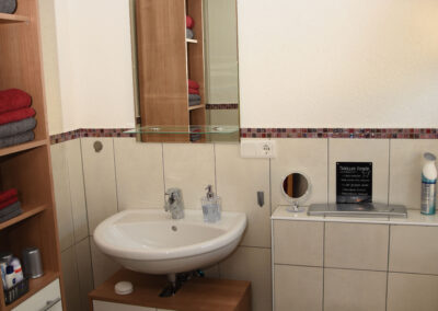 Angrenzend an das Schlafzimmer befindet sich ein kleines Bad mit Dusche und WC.