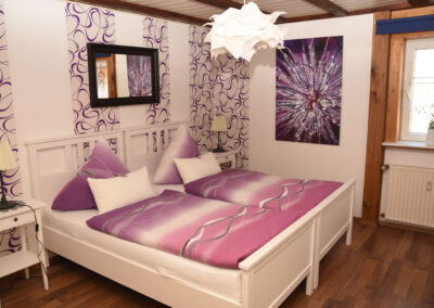Das zweite Schlafzimmer (lila Zimmer) hat zwei Einzelbetten. (je 90 cm X 200 cm).